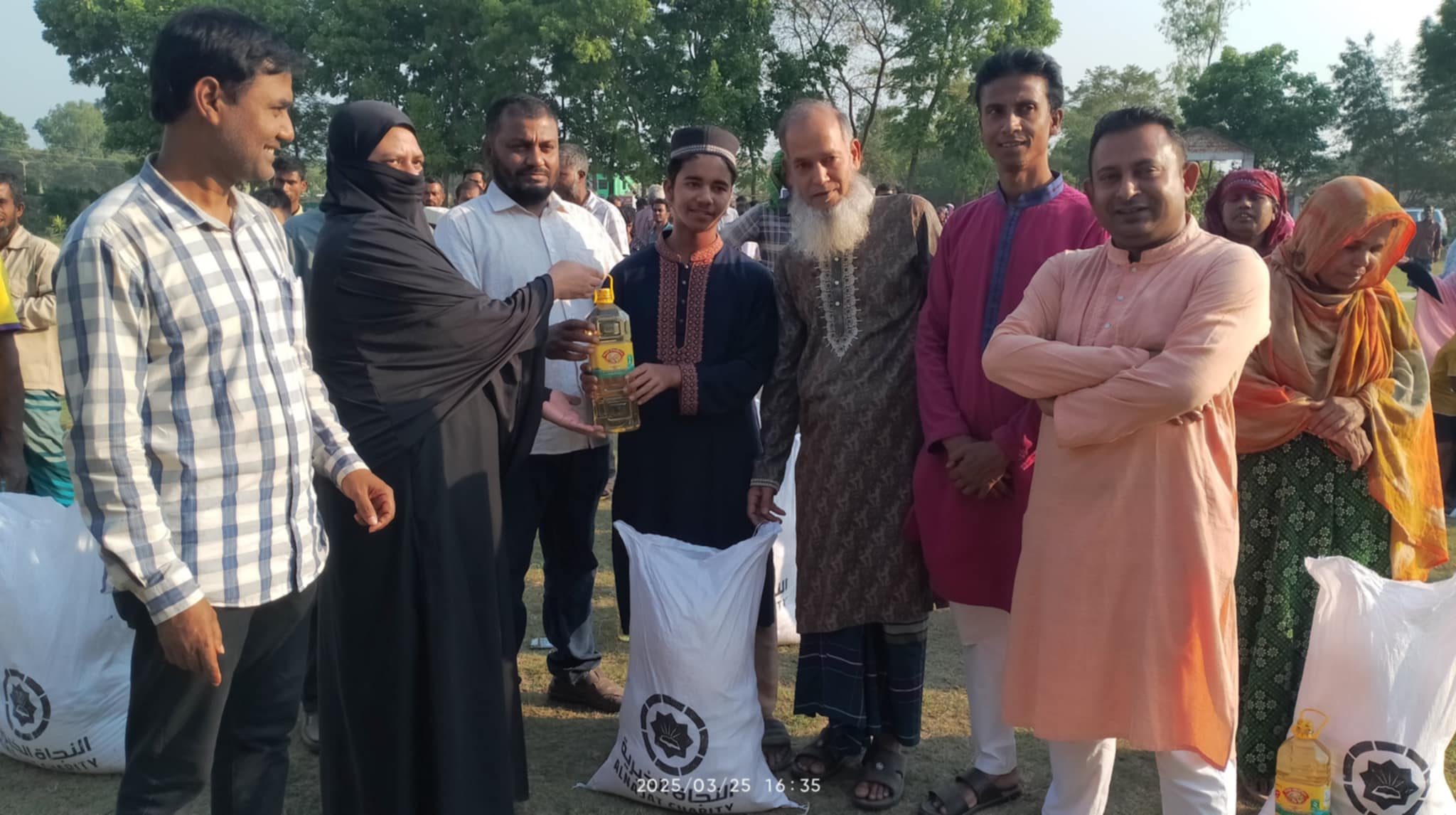 ধামরাই( ঢাকা) প্রতিনিধি: ঢাকার ধামরাইয়ে র্যাব কর্মকর্তার উদ্যোগে প্রায় দুই শতাধিক সুবিধা বঞ্চিত মানুষের মাঝে ঈদ সামগ্রী বিতরণ করা হয়েছে। শনিবার (২২ মার্চ) বিকেলে উপজেলার যাদবপুর ইউনিয়নের ভুবন মোহন স্কুল এন্ড কলেজের মাঠে এই ঈদ সামগ্রী বিতরণ করা হয়। ঈদ সামগ্রীর মধ্যে ছিল চাল, ডাল, লবণ, চিনি, আলু, পেয়াজ, তেল, ছোলা, খেজুর, সেমাই ইত্যাদি পণ্য। "আলোকিত যাদবপুর" সংগঠনের উদ্যোগে র্যাব কর্মকর্তা অতিরিক্ত পুলিশ সুপার মো: শহীদুল ইসলাম এর সার্বিক সহযোগিতায় এই ঈদ সামগ্রী বিতরণ করা হয়। বীর মুক্তিযোদ্ধা মো: আওলাদ হোসেন এর সভাপতিত্বে ঈদ সামগ্রী বিতরণ অনুষ্ঠানে উপস্থিত ছিলেন আলোকিত যাদবপুর সংগঠনের সাধারণ সম্পাদক প্রকৌশলী মো: এরশাদ, সাবেক সাধারণ সম্পাদক জাহাঙ্গীর আলম মিতুল, যুগ্ম সাধারণ সম্পাদক মাসুদুর রহমান পাপনসহ এলাকার গণ্যমাণ্য ব্যক্তিবর্গ। এ বিষয়ে র্যাব কর্মকর্তা অতিরিক্ত পুলিশ সুপার মো: শহীদুল ইসলাম বলেন, ঈদ মানে আনন্দ, ঈদ মানে খুশি। ঈদের এই আনন্দকে সুবিধা বঞ্চিত সকল মানুষের সাথে ভাগাভাগি করে নিতেই ক্ষুদ্র এই আয়োজন। তিনি সমাজের বিত্তবানদের হতদরিদ্র ও সুবিধা বঞ্চিত মানুষের পাশে দাঁড়াতে আহবান জানান। র্যাবের এই কর্মকর্তা ঢাকা উত্তরাতে সারা মাস প্রতিদিন ৬৯ জন রোজাদার চালক ও হতদরিদ্র ব্যক্তিদের ইফতারের ব্যবস্থা করেছেন।