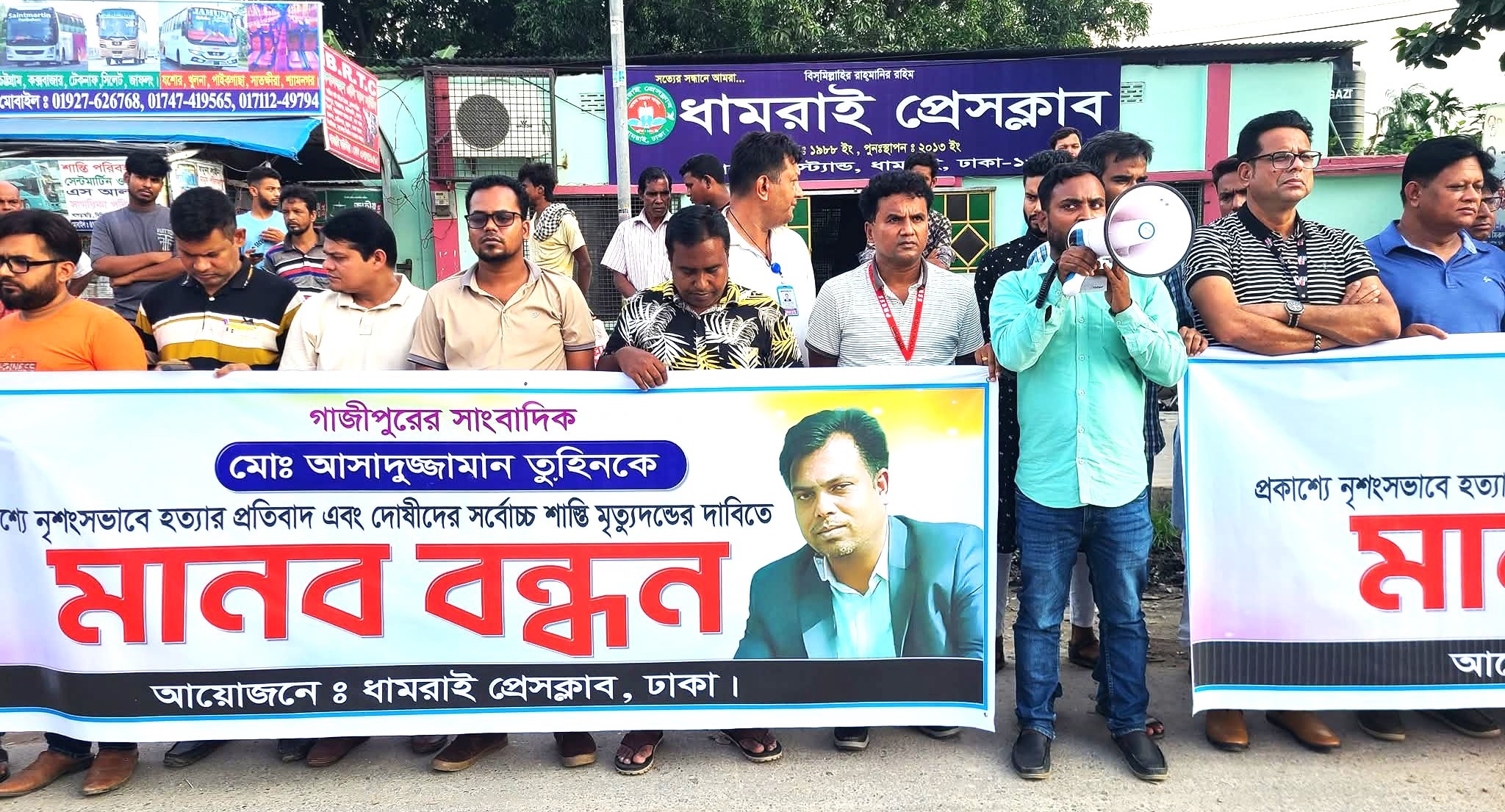 ধামরাইয়ে সাংবাদিক তুহিন হত্যার প্রতিবাদে মানববন্ধন